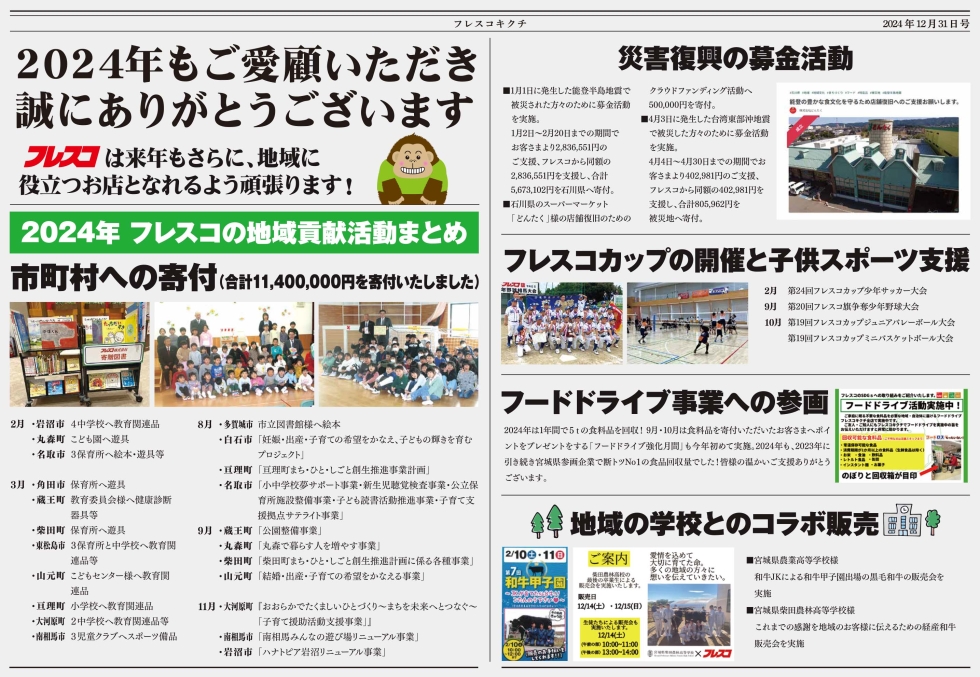 フレスコは昨年中、さまざまな地域貢献活動に